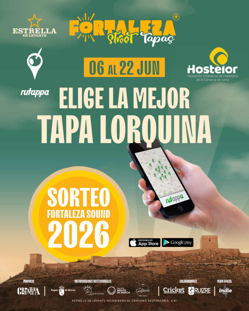 Con el principal objetivo de poner en valor el patrimonio gastronómico de Lorca y de la Región de Murcia, además de dinamizar el consumo y la vida social en la ciudad, la Asociación Profesional de Hosteleros de Lorca; Hostelor, junto a Fortaleza Sound y Estrella de Levante, y con la colaboracion del Instituto de Turismo de la Región de Murcia a través de la marca “1001 Sabores Región de Murcia”, y el Ayuntamiento de Lorca, organizan las II Jornadas Gastronómicas “Fortaleza Street Tapas” en Lorca del 6 al 22 de junio de 2025. Estos son los establecimientos participantes: